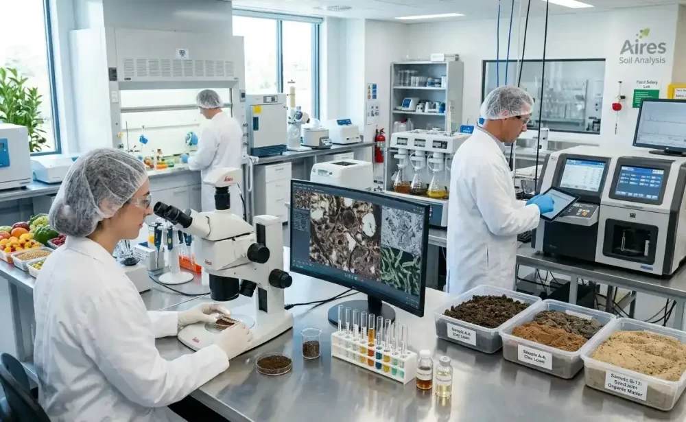 It evaluates soil composition, nutrients, pH and contamination risks to improve crop yield and land management.